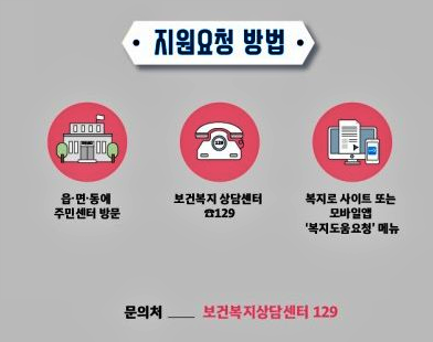 긴급복지지원 신청방법은 거주하시는 곳의 구청이나 동 주민센터로 방문하시거나 혹은 전화로 신청이 가능합니다.