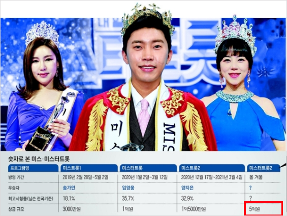미스트롯1부터 시작해서, 미스터트롯, 미스트롯2가 연이어 대박을 터뜨렸죠.