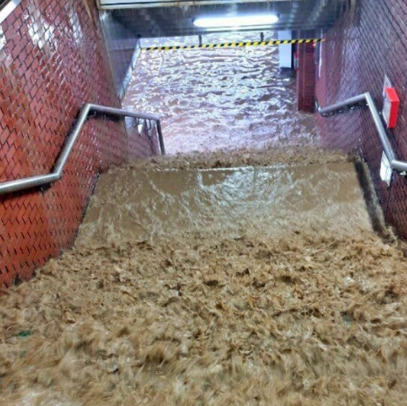 현재 영남 지방을 중심으로 시간당 80mm가 넘는 집중호우가 발생하면서 곳곳에서 침수 피해 제보가 잇따르고 있는데요, 부산에서는 도로는 물론 지하철 역 안까지 물이 들어온 상태입니다.