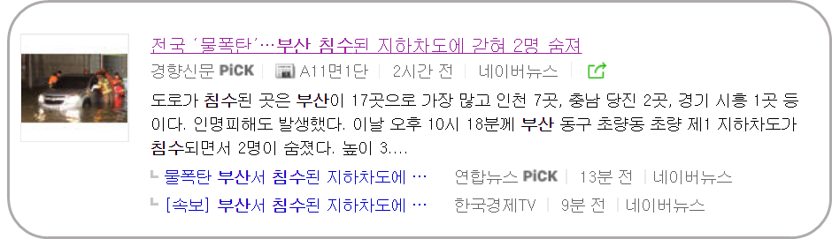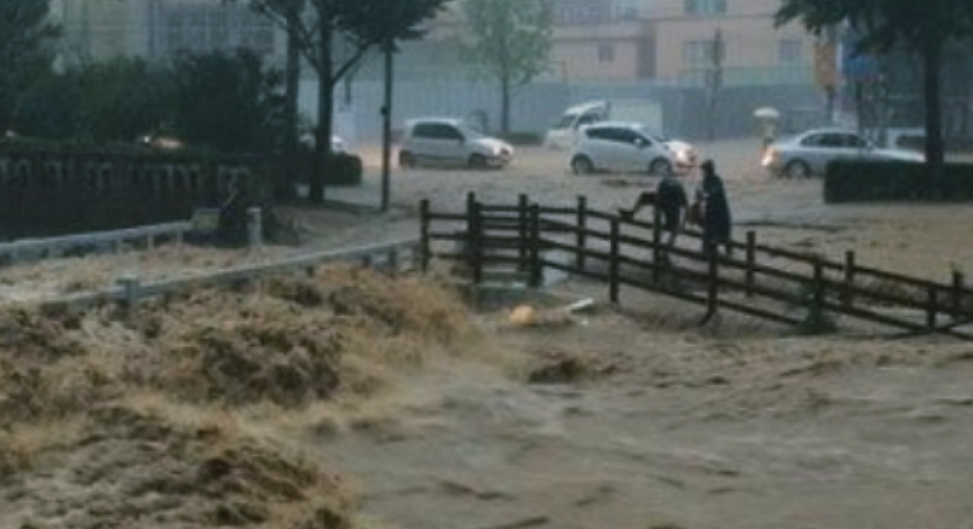 사진을 보면 아시겠지만 부산은 현재 어느 곳이 인도이고 어느 곳이 차도인지 분간이 안 갈만큼 도로 전체가 물에 휩쌓여있는 상태라고 합니다.