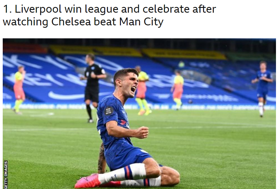 1위. 첼시가 맨시티를 꺾음으로서 리버풀의 우승이 확정되는 순간