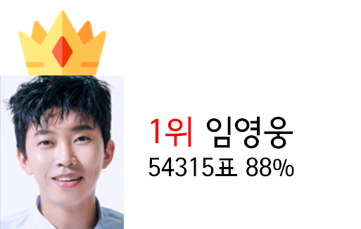 놀라운 것은 임영웅은 전체투표의 88%를 차지할 정도로 투표에서 압도적인 인기를 보여줬는데요, 임영웅은 TV조선 ‘미스터트롯’ 에서 우승을 하며 벼락스타가 된 바가 있습니다.
