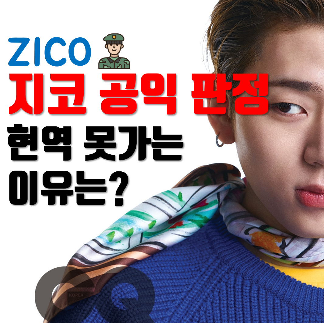 요즘 랩 시장에서 우리나라 남자 랩퍼 중 가장 영향력 있는 랩퍼 중 한 명인 지코가(ZICO 본명 우지호) 공익(사회복무요원) 판정을 받았습니다.