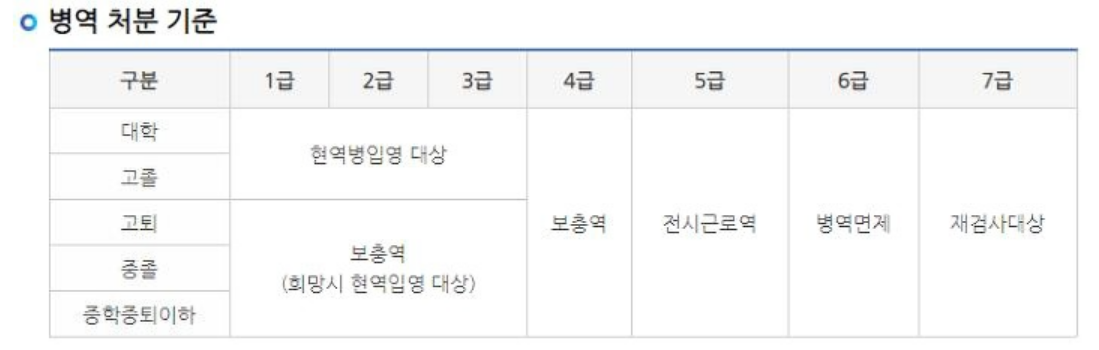 병무청의 병역 처분 기준에 의하면 1~3급은 현역병 입영대상이고(고졸 이상 기준), 4급부터가 보충역으로 근무하게 됩니다. 4급 판정의 이유로는 류머티즘 관절염, 십자인대 문제, 척추관절병증, 당뇨병, 심장질환 등으로 다양한데요, 현재 지코의 사회복무 사유에 대해서 정확히 알려진 바는 없다고 합니다.