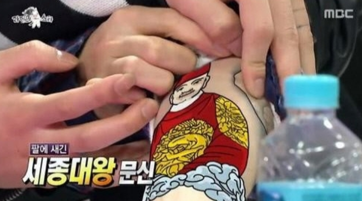 지코는 평소 세종대왕의 광팬임을 여러 방송에서 말한 바가 있는데요, 이러한 팬심에 팔에 세종대왕 문신과 팔 곳곳에 무궁화 등의 나라사랑(?)문신을 한 것으로 알려져 있죠.